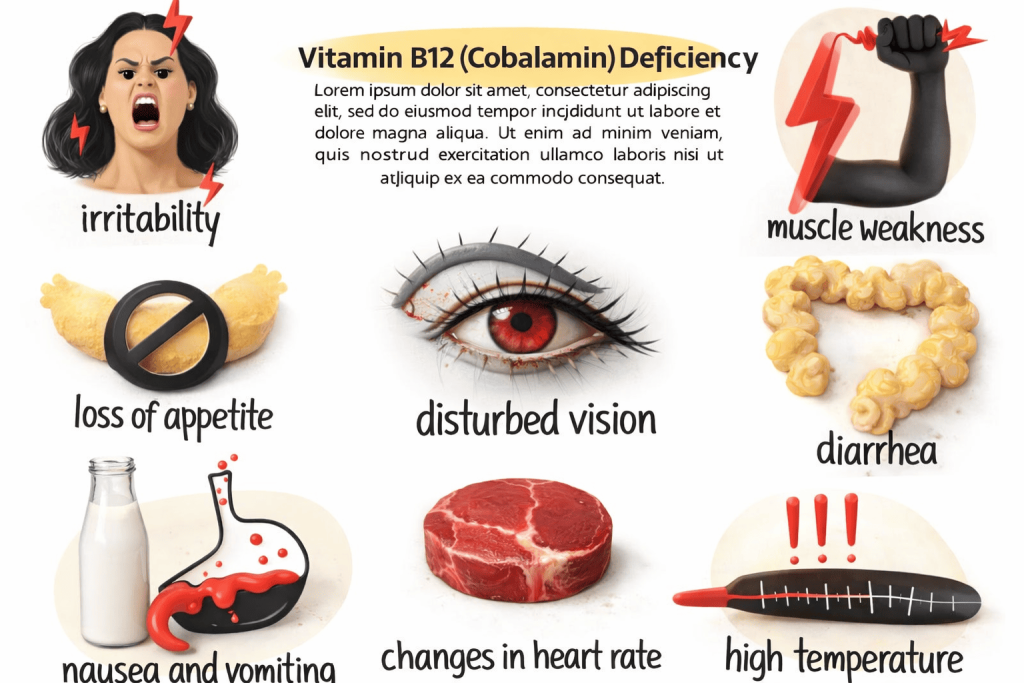 Vitamin B12 is crucial for nerve function, red blood cell production, and DNA synthesis. It’s particularly common among vegetarians, vegans, and older adults.